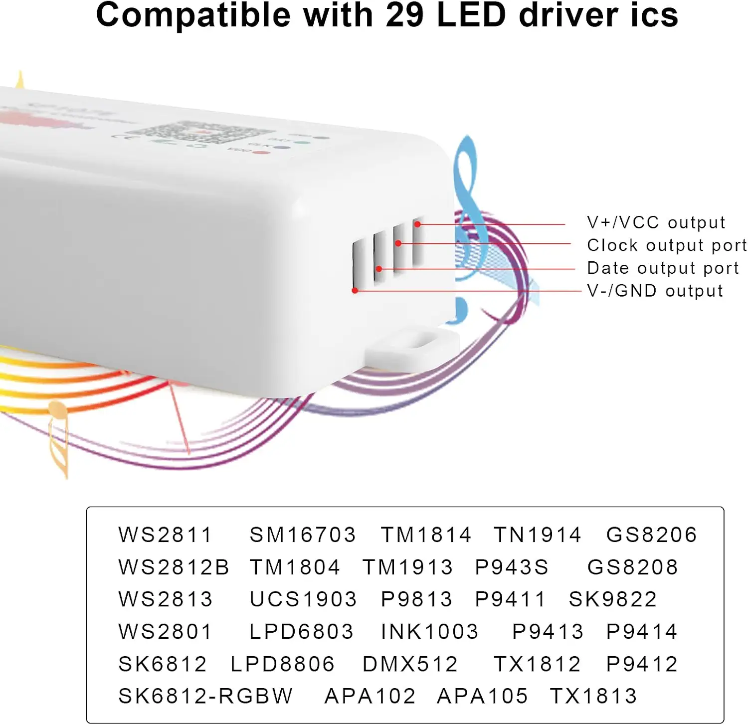 سازگار با اکثر ICهای LED یکسیم و دوسیم مانند WS2812، WS2811، SK6812-RGBW، APA102 و غیره